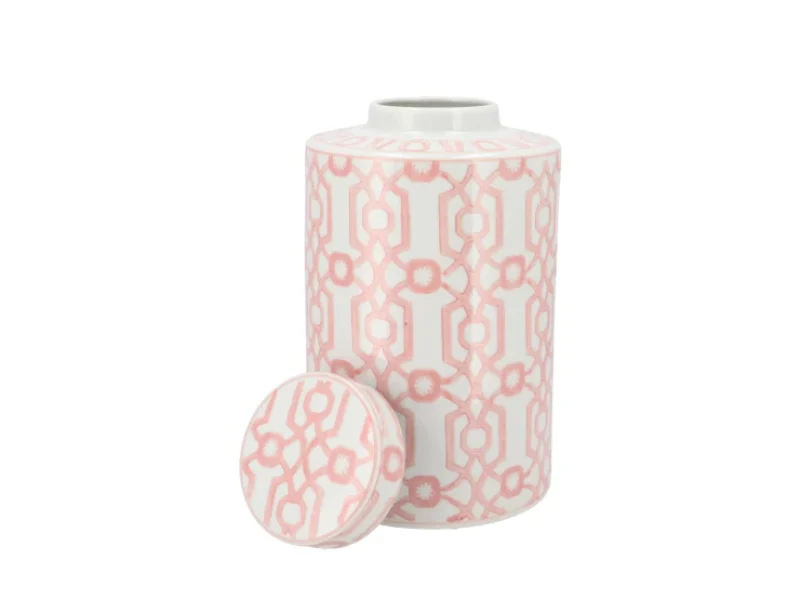 Vaas voorraadpot met subtiel Roze Print H 30 cm