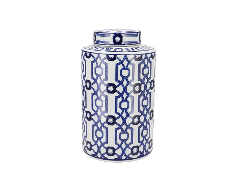 Vaas voorraadpot met subtiel blauwe Print H 30 cm