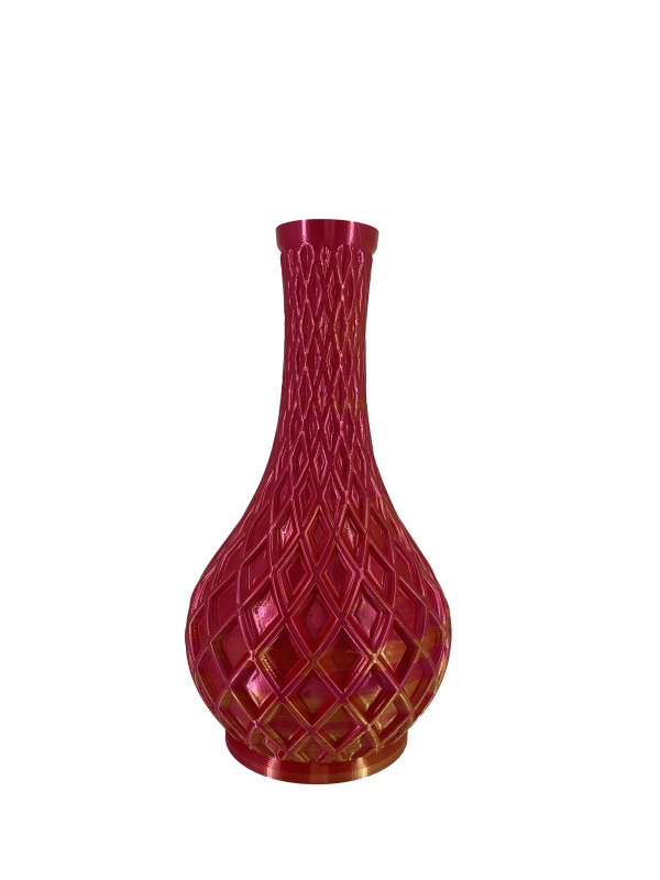 Hoe uniek is deze vaas?! Alleen al doordat hij 3d geprint is word hij uniek. Maar doordat hij welgeteld 3 verschillende kleuren heeft maakt het hem heel speciaal. De vaas heeft een groene, blauwe en een paarse kleur. De hoogte van de vaas is 30 cm.